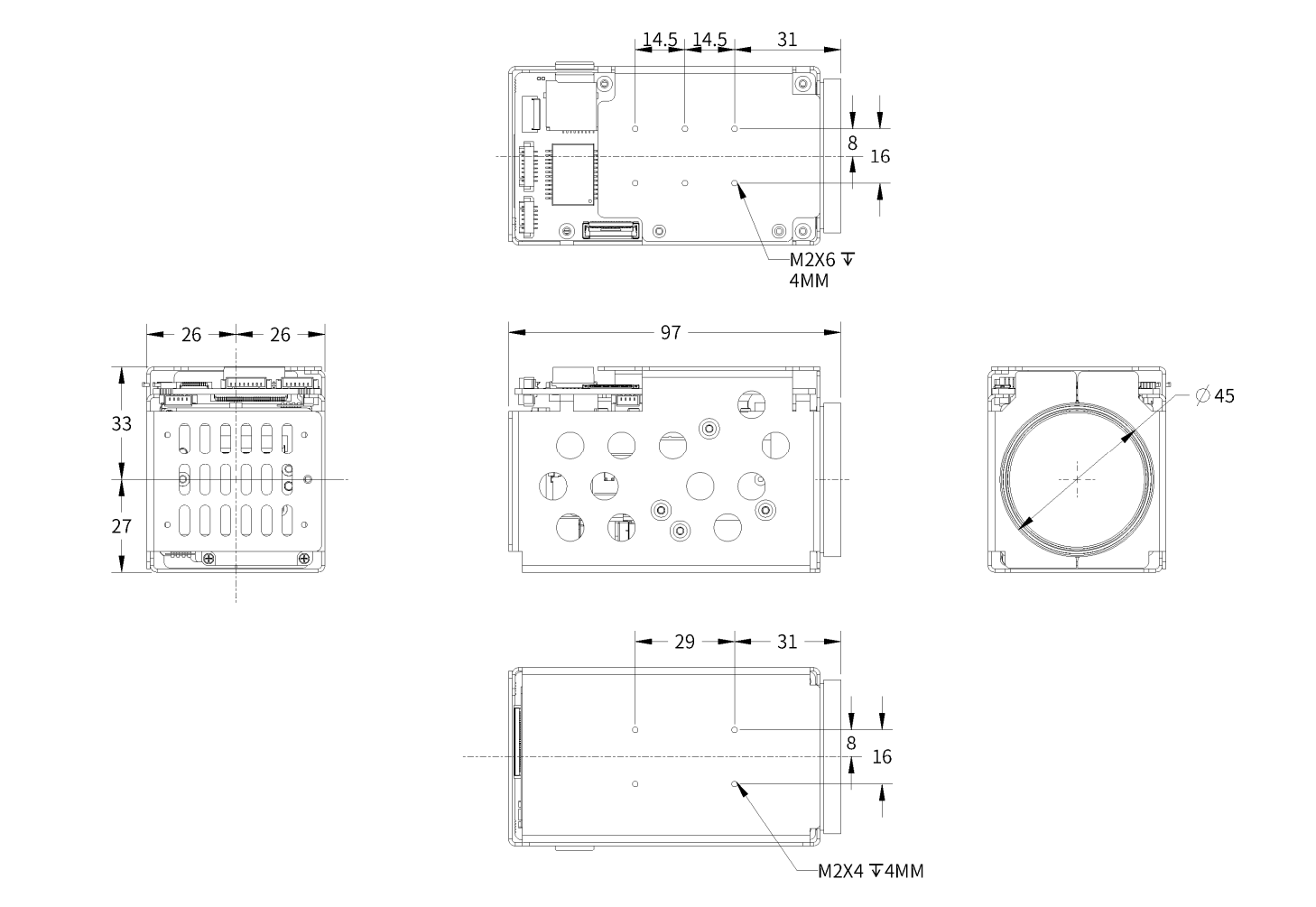 | Блиско растојание на фокусот | 0,5m~2m (Широк~Tele) | ||||